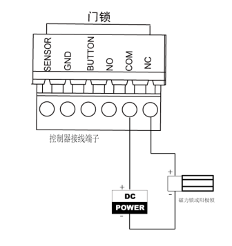 阳极锁/磁力锁,阳极锁/磁力锁要接门禁的NC和COM