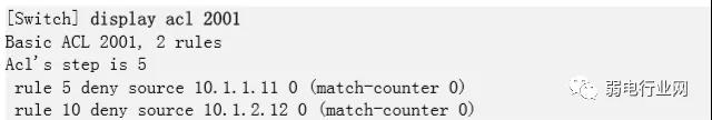 [Switch-acl-basic-2001] rule deny source 10.1.1.11 0 //禁止IP地址为10.1.1.11的主机访问外网