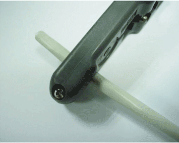 第十四步、将手工具压制底部至标准深度,手工具会自动弹开