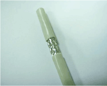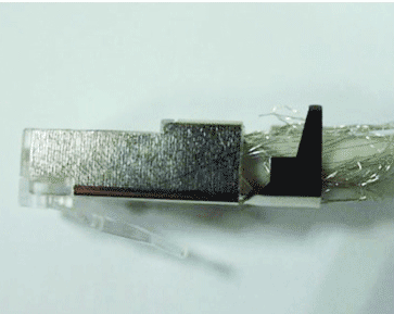 第十六步、将固定扣的两端略往内扳,并确定隔离层或地线有充分接触
