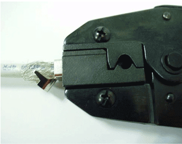 第十三步、放入手工具前端,压制金属片(保证你的网线钳支持七类网线才行)